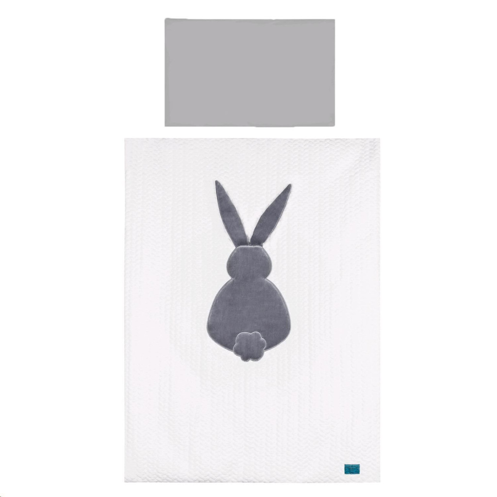 3-részes ágyneműgarnitúra Belisima Nyuszi. Az ágyneműgarnitúra egyik oldala kötött anyagból készült, 3D-s mintával és aranyos plüss nyuszival díszitve. A másik oldala pamut. Puha, kellemes anygból készült. Párnahuzatot 40x60 cm, takaró huzatot 100x135 cm és rácsvédőt 31x175 cm tartalmaz. Anyag: felső oldala kötött anyag: 50% pamut, 50% poliészter. Alsó oldala 100% pamut, töltet: 100% poliészter. Ezek a termékek biztonságosak, mivel: a természetes pamut nem okoz bőrirritációt, mivel nem tartalmaz formaldehidet és egyéb, csecsemőkre káros anyagokat. Nem veszítenek színeik élénkségéből és nem színezi el a többi ruhát. Kellemes mintázatúak és színei nyugtató hatásúak. Nem tartalmaznak gombokat, sem műanyag illetve acél darabkákat, melyek veszélyesek lennének gyermeke számára. A párna és a paplan töltete antialergén anyagból készült ami azt jelenti, hogy nem terjeszt mikroorganizmusokat és penészt.