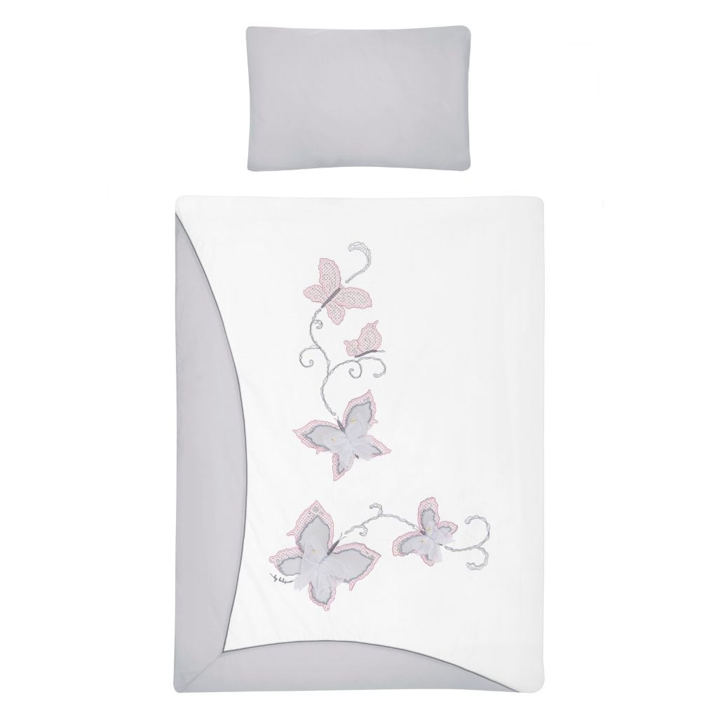 6- részes ágyneműgarnitúra Belisima Butterfly babák számára. Tartalmaz: párnahuzatot, paplanhuzatot, rácsvédőt, párnát, baldachint és paplant. Párnahuzat 40x60 cm, takaró huzat 100x135 cm, rácsvédő 180 cm. Puha minőségi anyagból készült. Összetétel: 100% pamut. Ezek a termékek biztonságosak, mivel: a természetes pamut nem okoz bőrirritációt, mivel nem tartalmaz formaldehidet és egyéb, csecsemőkre káros anyagokat. Nem veszítenek színeik élénkségéből és nem színezi el a többi ruhát. Kellemes mintázatúak és színei nyugtató hatásúak. Az ágyneműhuzaton használt cipzár "biztonságos cipzár" lengővégek nélkül, amit a gyermek nem vehet le és nem nyelhet le! Nem tartalmaznak gombokat, sem műanyag illetve acél darabkákat, melyek veszélyesek lennének gyermeke számára. A párna és a paplan töltete antialergén anyagból készült ami azt jelenti, hogy nem terjeszt mikroorganizmusokat és penészt.