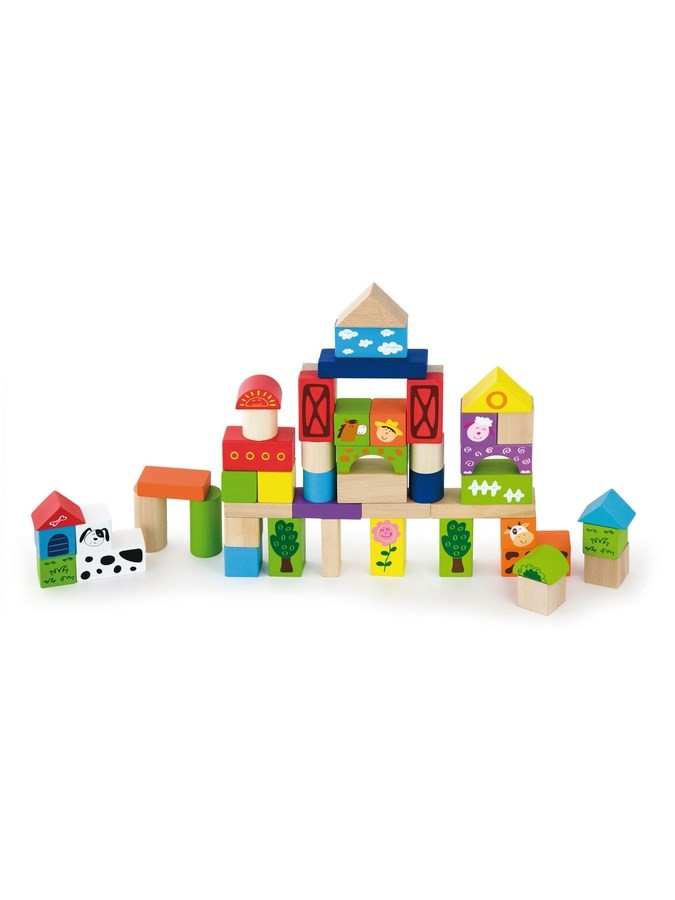 Színes, fából készült kocka Viga Farm. 50 gyönyörű színű elemet a legkisebb építők számára is. A kockák különböző formájúak, méretűek, gyönyörű színekkel és álatkert motívummal díszitve. Olyan formákat talál, mint a kocka, blokk, háromszög, henger, téglalap, híd, stb. A csomag belsejében egy útmutató található különböző épületek, városok és tárgyak készítéséhez, amelyek inspirálják gyermekét kreatív szórakoztatásra. A játék segíti a gyermekeknek megismerni a formákat és színeket. A játék festett fa. Kiemelt fontosságúnak tartjuk a biztonságot és minőségét a termékeinket, így a használt festék a játékokon nem mérgező, és megfelel a biztonsági előírásoknak (EN71 és ASTM). A játék méretei: dxvxš 15x8,3x5,6 cm. 2 éves kortól ajánlot.