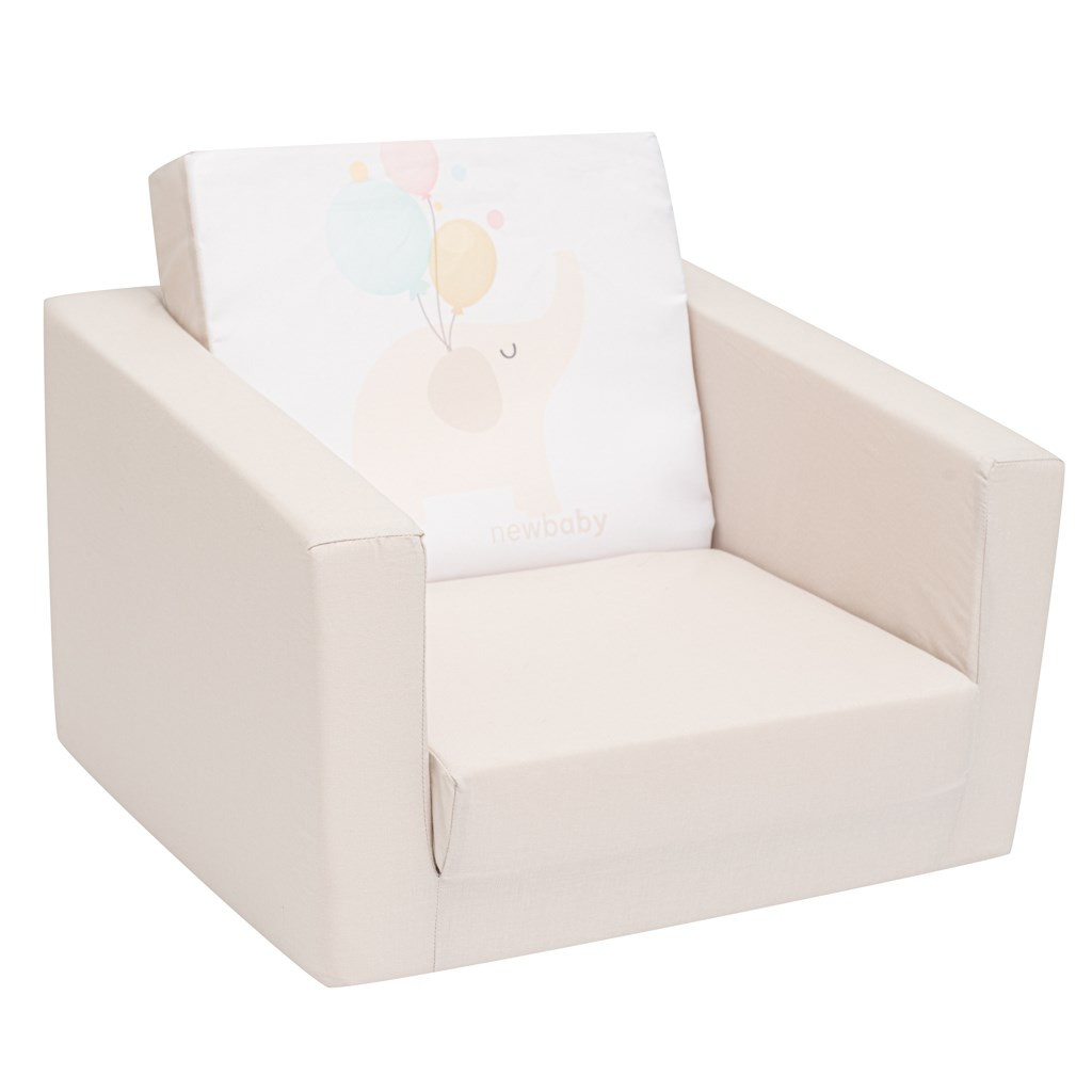 Gyermek kihajtható fotel New Baby nagyszerű és nagyon népszerű kiegészítője a gyerekszobának. A legkisebb gyerekeknek szánt többfunkciós szék puha és könnyű habból készült, levehető, mosható pamut huzattal rendelkezik. A cipzárnak köszönhetően a huzat könnyen eltávolítható. A huzat nagyon kellemes színekkel rendelkezik, és elefánt képe díszíti. Biztosítja a gyermek kényelmét, és ízlésesen kiegészíti a gyerekszobát. A fotel pihenésre, mesenézésre vagy szórakozásra is használható. Eredeti kollekciónk a Carero cég képzett tervezőitől származik New Baby márkanév alatt. Minőségi anyagokra nyomtatunk mintákat. Időtlen, elegáns és stílusos dizájnokat tervezünk gyermekek számára. Az anyagok OEKO-TEX STANDARD 100 tanúsítvánnyal rendelkeznek. Méretek: 37x45x42. Összetétel: huzat 100% pamut, belső anyag: poliuretán hab.