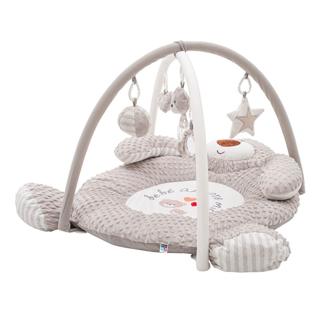 A szőnyeghez egy játékhíd tartozik, levehető játékokkal, amelyeket tetszés szerint áthelyezhetsz vagy önállóan is használhatsz. Minden baba talál benne valami érdekeset – tükröt, zörgő elemeket, csipogót, puha rágókát, csengőt és egy beépített lejátszós játékot, amely kellemes dallamot játszik le megnyomáskor.