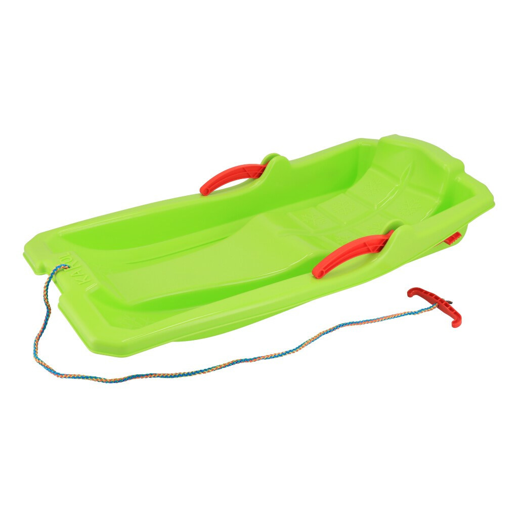 Műanyag lapos szánkó fékekkel Baby Mix KAROL zöld