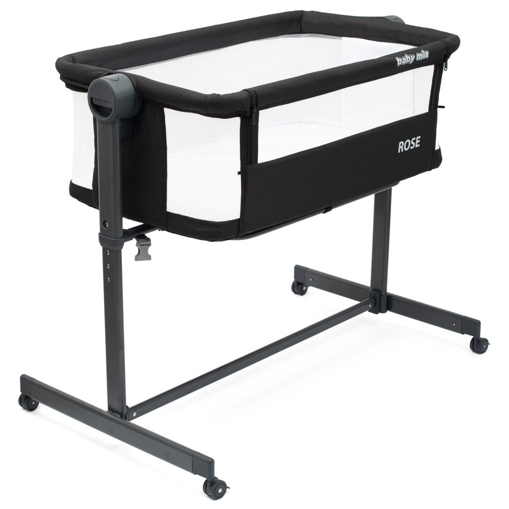 A Baby Mix Rose kiságy biztosítja a baba biztonságát alvás közben. A Rose kiságy 5 magassági szinttel rendelkezik (68-80 cm), így könnyen a szülői ágy magasságához igazítható. A kiságy cipzárjai a külső oldalon vannak, így a szülők könnyedén hozzáférhetnek a kiságyhoz.